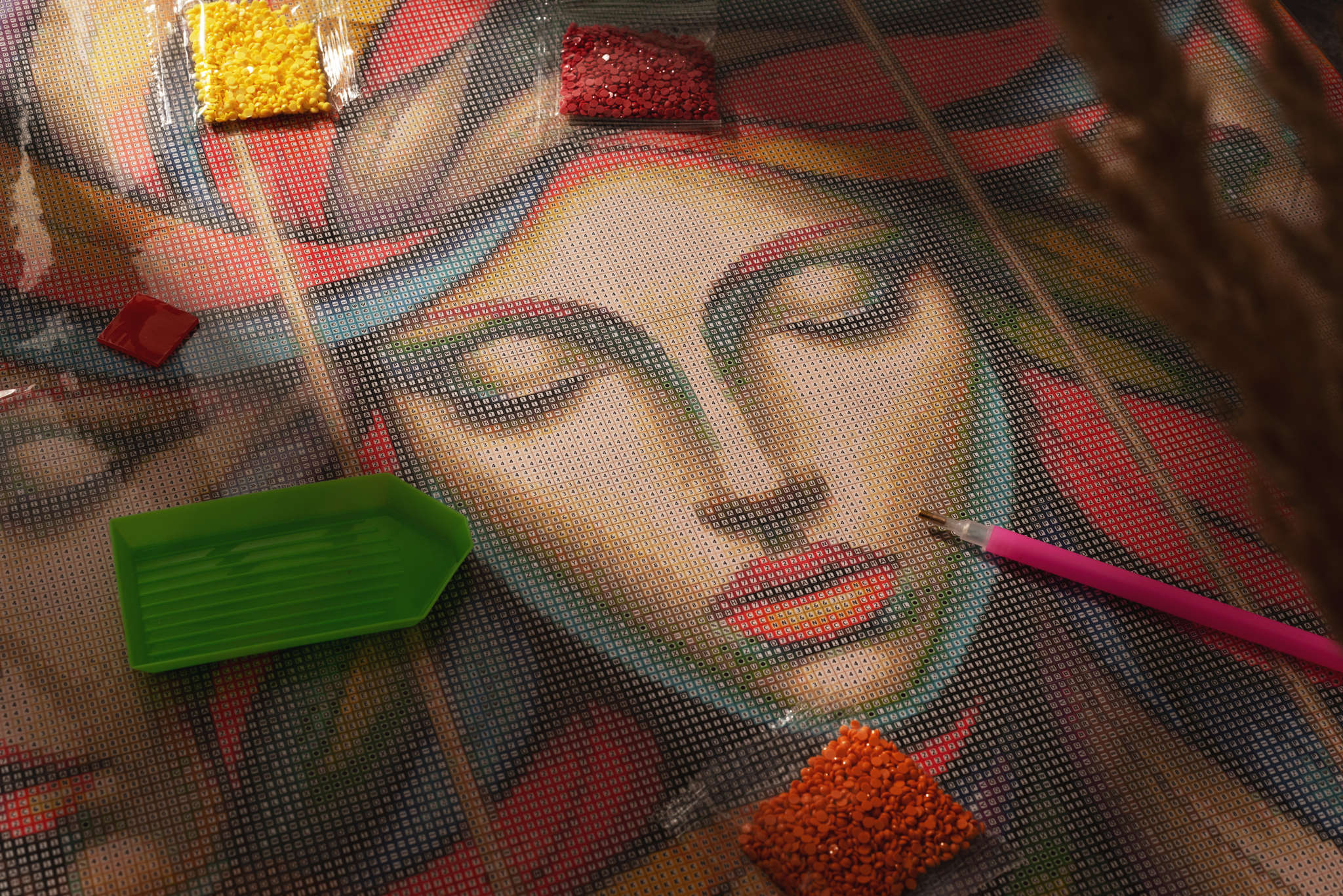 - Płótno ze szczegółowym, nadrukowanym wzorem i warstwą klejącą, na której należy przyklejać diamenciki o odpowiednim kolorze