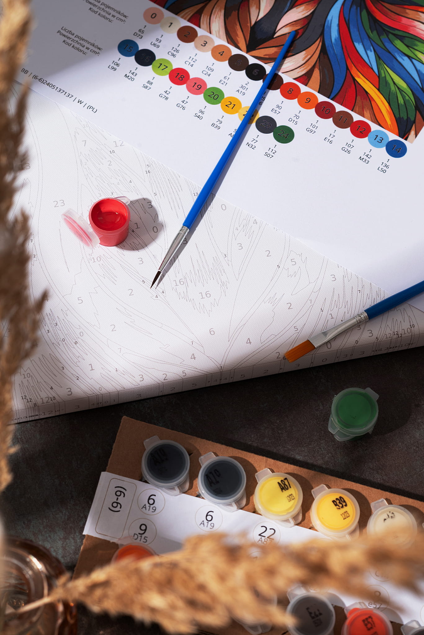 - Wysokiej jakości farby akrylowe na bazie wody o dużym zagęszczeniu pigmentów - sprawdzona jakość farb gwarantuje trwałość, kolory nie blakną pod wpływem czasu i światła, a obraz zachowuje piękne, nasycone kolory na długi czas.